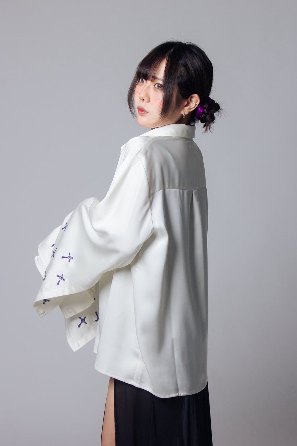 袖部分はボタンで調節が可能で、まるで着物のように袖を広げることができるのも特徴のひとつ。スタイリングに遊び心を与え、あなたの個性を表現します。