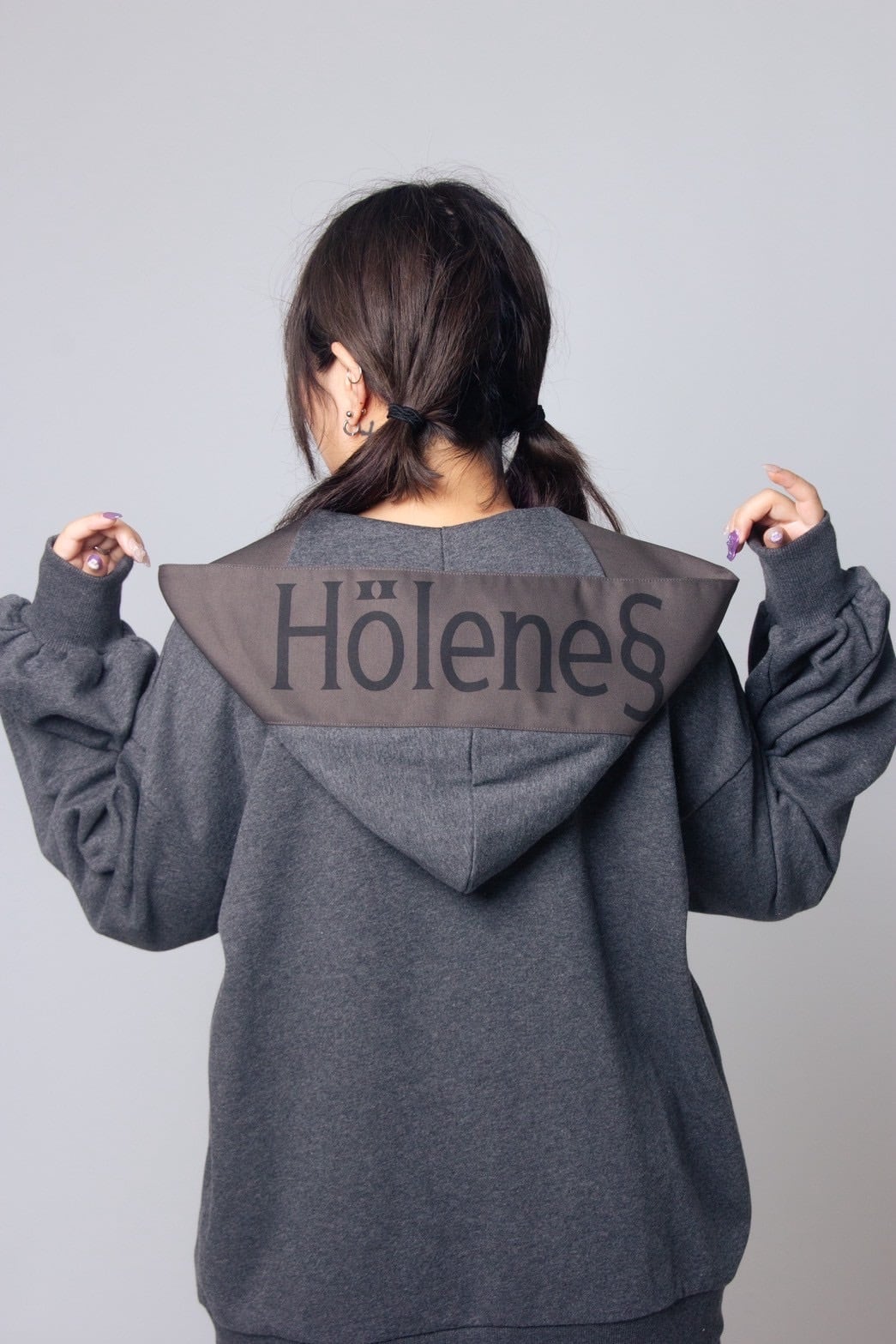 フードのロゴが美しく映えるように特別に生地を選び、ボリューム感のある袖が特徴的なスタイルを演出します。トレーナー生地なので、心地よい着心地でリラックスした雰囲気を提供します。