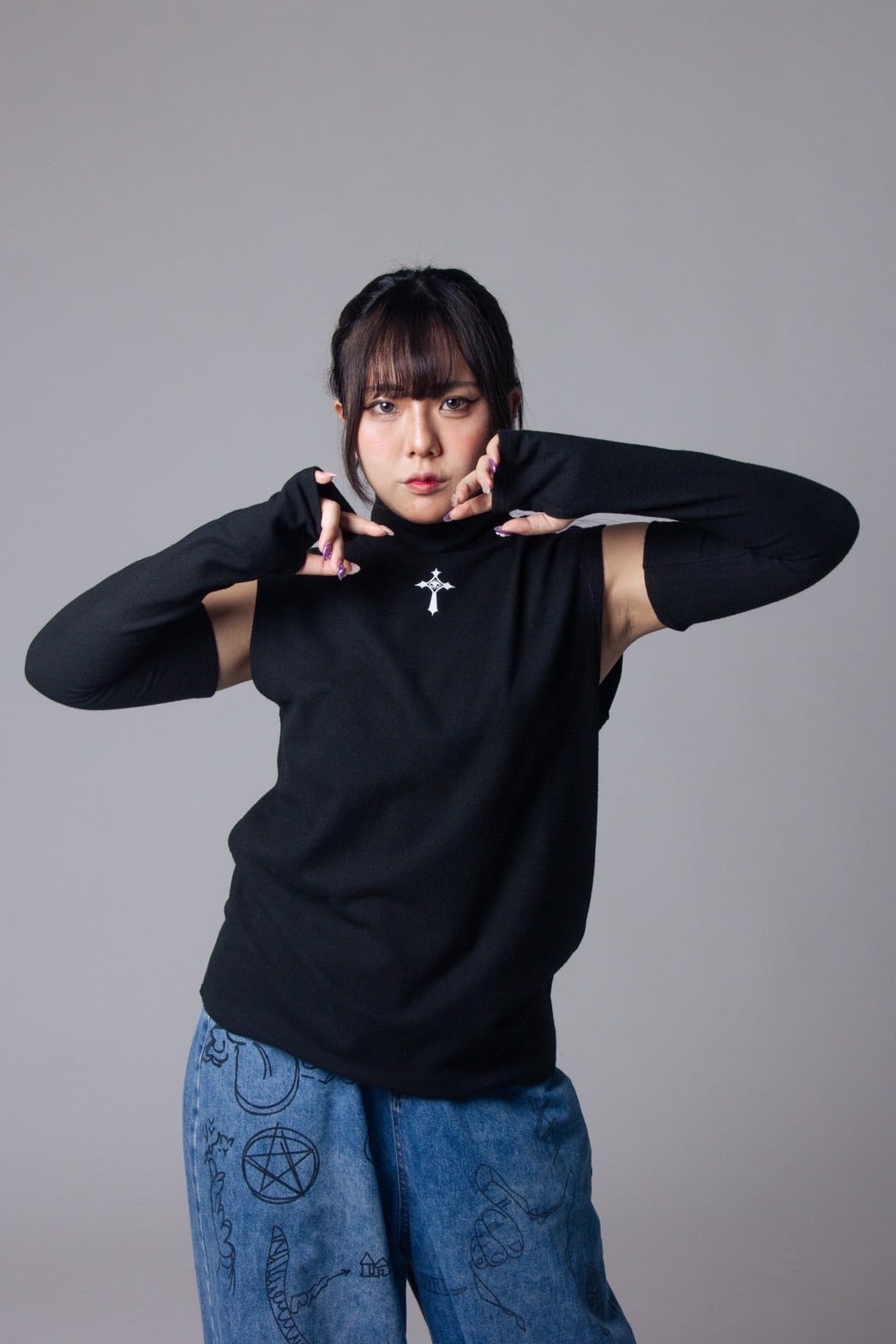 セットのアームカバーを組み合わせることで、トレンド感のあるレイヤードスタイルが完成します。もちろん単体でも着られるので、着こなしの幅が広がります。