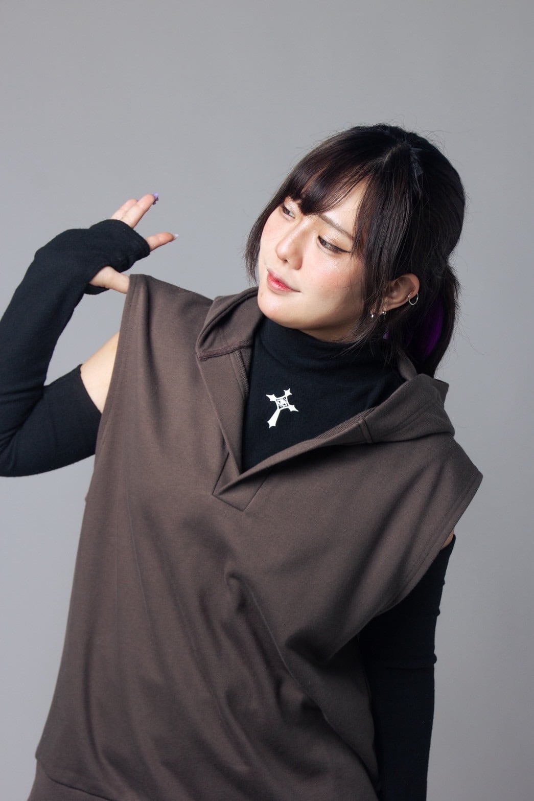 個性的なレイヤードスタイルが楽しめるsleeveless hoodie!