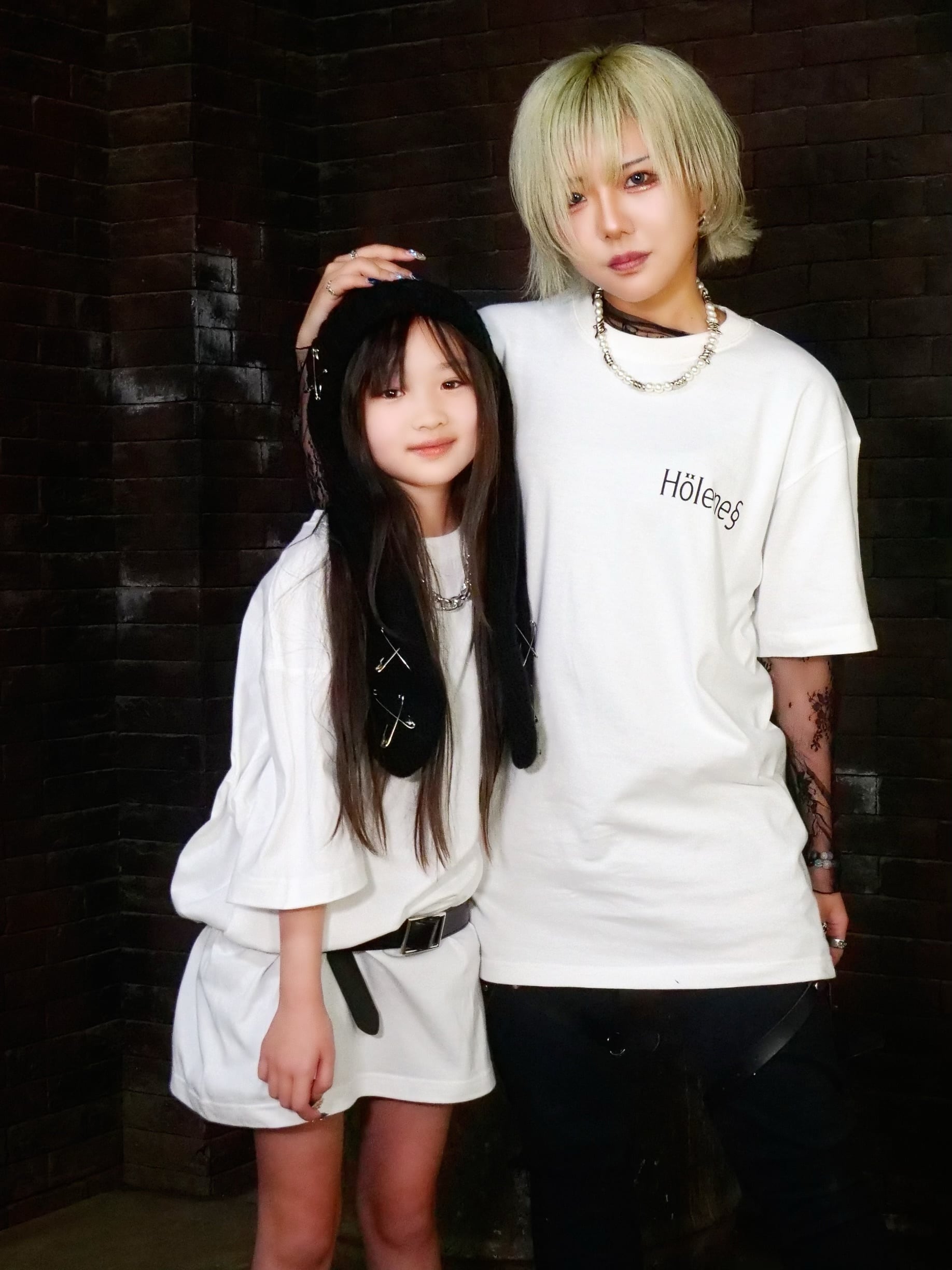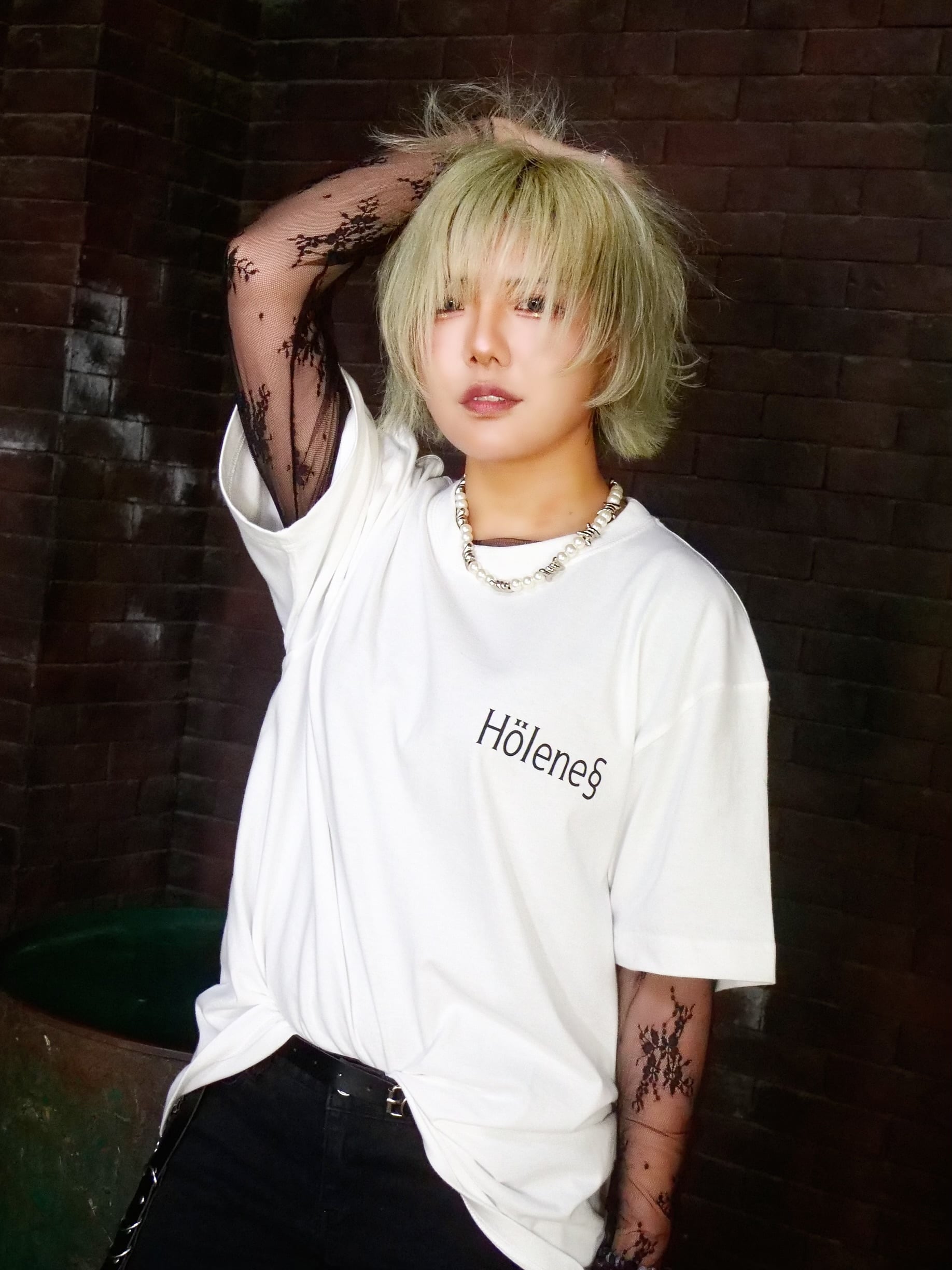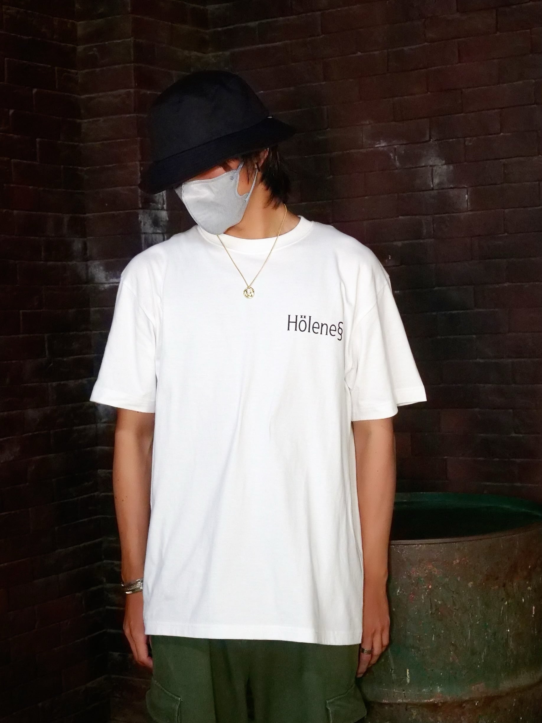 当ブランドを背中に大きく描いたビッグTシャツ。左胸元にはブランド名を。
