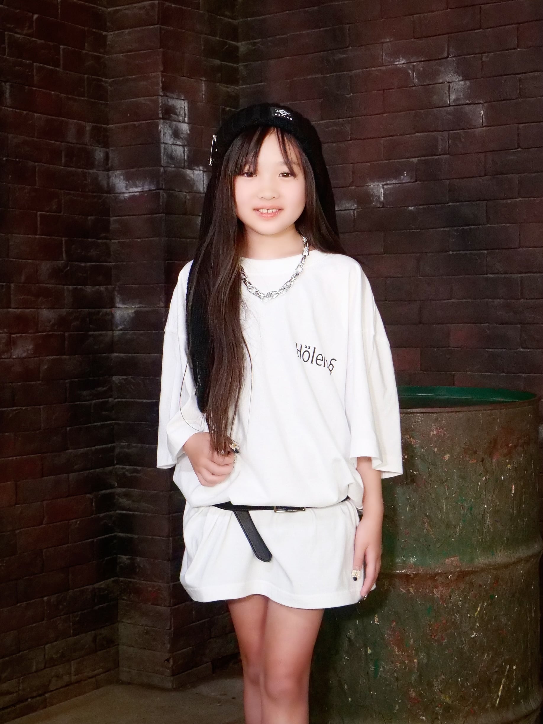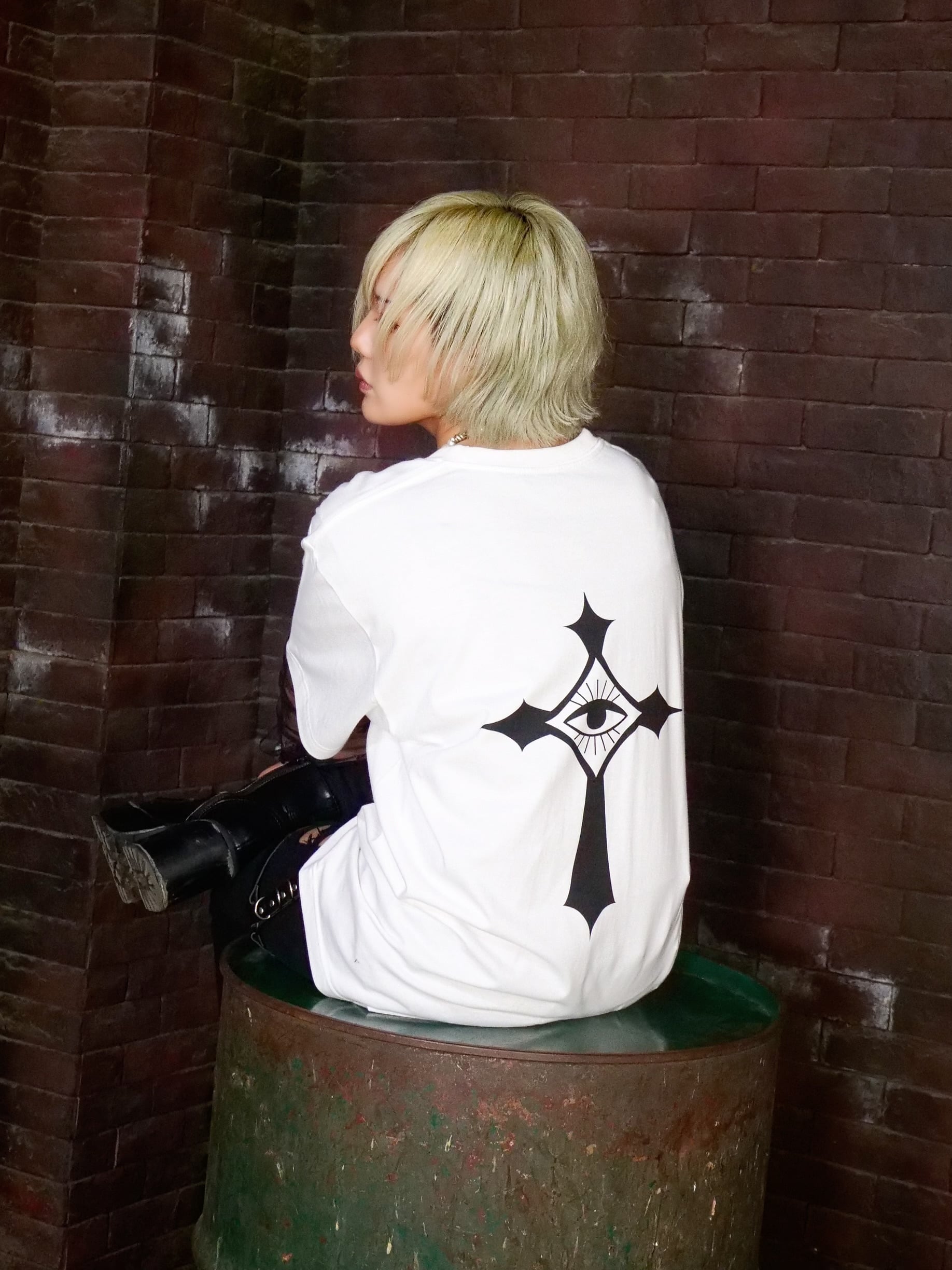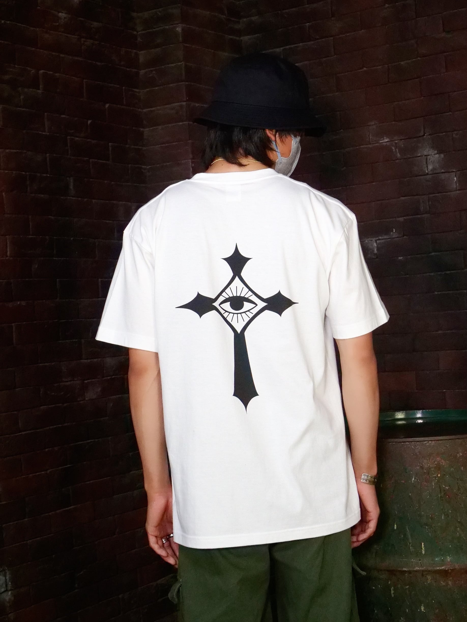 当ブランドを背中に大きく描いたビッグTシャツ。左胸元にはブランド名を。