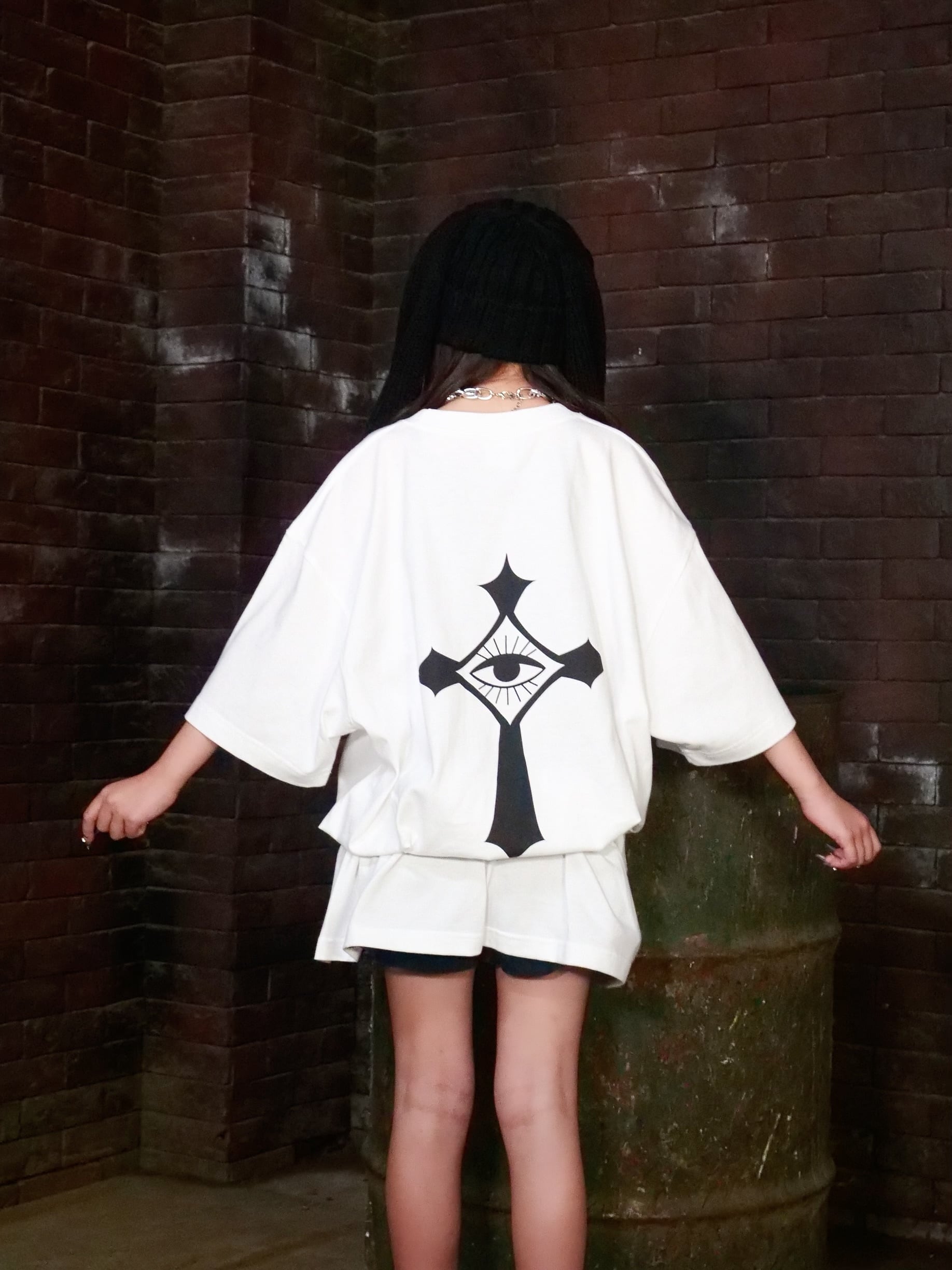 シンプルなデザインのなかに印象的な目がとても可愛いTシャツです。